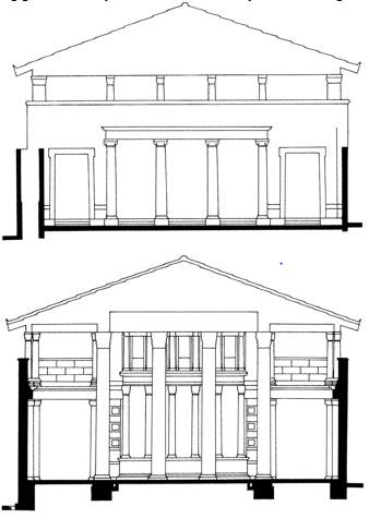 Figure 6.4 Pompeii, basilica, 100–90 bc: restored elevation and section. (After K. Ohr, Die Basilika in Pompeji, [Karlsruhe: Diss. Darmstadt, 1973].)