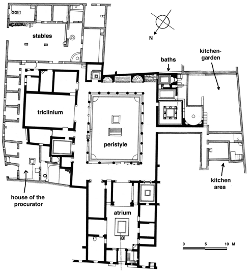 Until the second century bc Pompeian houses consisted of an atrium which gave access to all the rooms and perhaps a small garden behind the house, as for example in the House of the Surgeon (Figure 1.2b). As a result of contact with Greece the peristyle became fashionable,