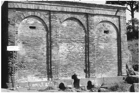 Figure 6.12 Pompeii, water tower (castellum aquae), where the Pompeii branch of the Serino aqueduct terminated. The flow was split into three at this point.