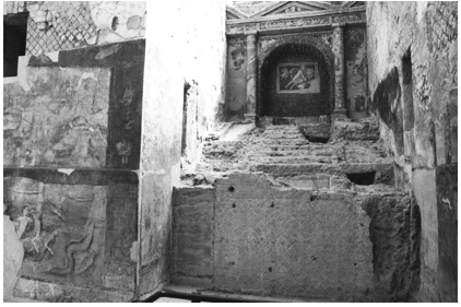 Figure 6.14 Pompeii, Suburban Baths, plunge in the frigidarium (cold room). The plunge itself is painted with Nilotic scenes. A cascade of water pours into it from the nymphaeum (fountain) high above.