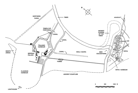 Finally, Claudius (ad 41–54) revived the idea. The reaction of the emperor’s architects was that the scheme would be prohibitively expensive, and they tried to dissuade him (Dio, 60.11.3). However, the emperor persisted and excavation work began in ad 42 at a spot about 4 kilometres north of the harbour mouth (Figure 6.16).